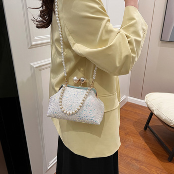 2024 nuevo bolso de lujo para mujer, bolso cruzado dulce con cadena de perlas, bolso de hombro Vintage ostentoso para mujer