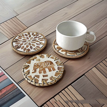 हस्तनिर्मित रतन शेल इन्सुलेशन राउंड टेबल मैट घरेलू चाय कप प्रचार के लिए एंटी-स्केलिंग कोस्टर