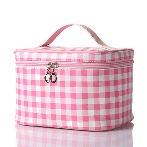 Женский модный кошелек на молнии в клетку, хлопчатобумажная холщовая косметичка с застежкой-молнией, органайзер для косметики из ПУ